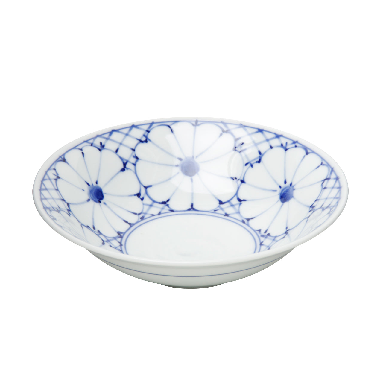 中くらいのサイズのこの鉢は、ちょっとした煮込み料理を盛り付けるのにぴったりです。素朴な風合いが爽やかな印象を与え、若い世代に人気です。この青白磁の鉢は、日本のインテリアに欠かせないアイテムであり、コレクションにぜひ加えたい逸品です。六角形の花輪文様が施されたこの鉢は、小さなサラダボウルとしてもお使いいただけます。